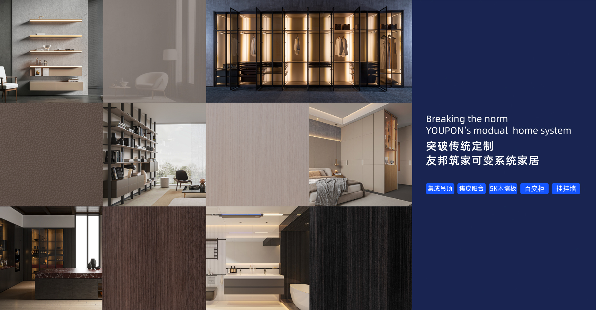 浙江友邦集成吊顶股份有限公司,集成吊顶行业首家深交所A股上市公司(股票代码:002718)。从集成吊顶技术的发明者,到模块化墙柜系统的倡导者,打造行业领先的模块化集成吊顶及可变系统家居品牌,友邦致力于通过吊顶和筑家两大核心家居体系,包括集成吊顶、挂挂墙、百变柜、5K系统墙板4大核心品类,全面打造灵活、可持续的一站式家居解决方案,为全球用户提供更自由的生活场景。
