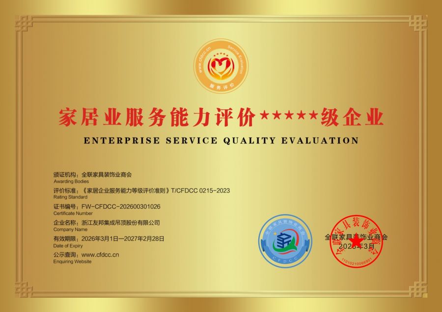 3·15国际消费者权益日来临之际,深耕中国家居建材领域二十余年、集成吊顶发明者YOUPON友邦,一举斩获全国工商联家具装饰业商会颁发的三项重磅荣誉:家居业产品质量评价★★★★★级企业、家居业信用评价AAAAA级企业、家居业服务能力评价★★★★★级企业。此次揽获三项权威评级,不仅是市场与消费者对友邦二十余年坚守品质、恪守诚信、精进服务的全面肯定,更是行业对其作为标杆企业,引领中国制造高质量发展的高度认可。