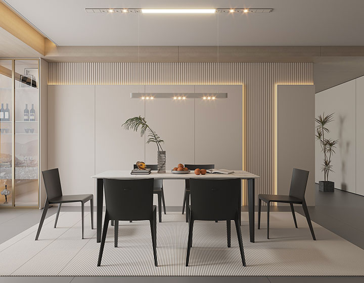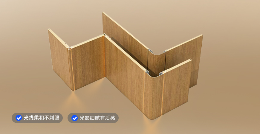 取消传统灯槽型材依赖,运用灯条直卡式安装技术,打造隐藏式光源,避免直射炫光与灯珠阴影。
