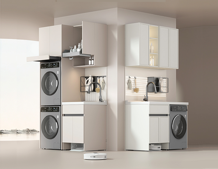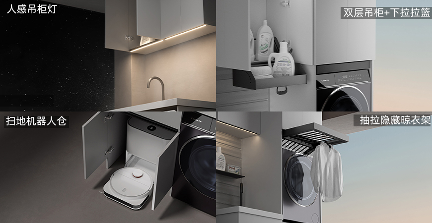 扫地机器人仓:节省空间,上下水可接入阳台下水管。